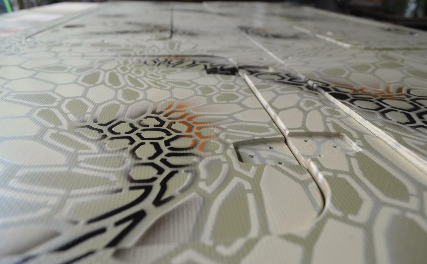 Камуфляжная окраска "Криптэк" от компании PND-CUSTOM является фирменным стилем окраски лодок-болотоходов "ХИЩНИК" и выполняется качественными промышленными эмалями концерна HELIOS (Германия) с полным соблюдением заводской технологии окраски пластмасс.